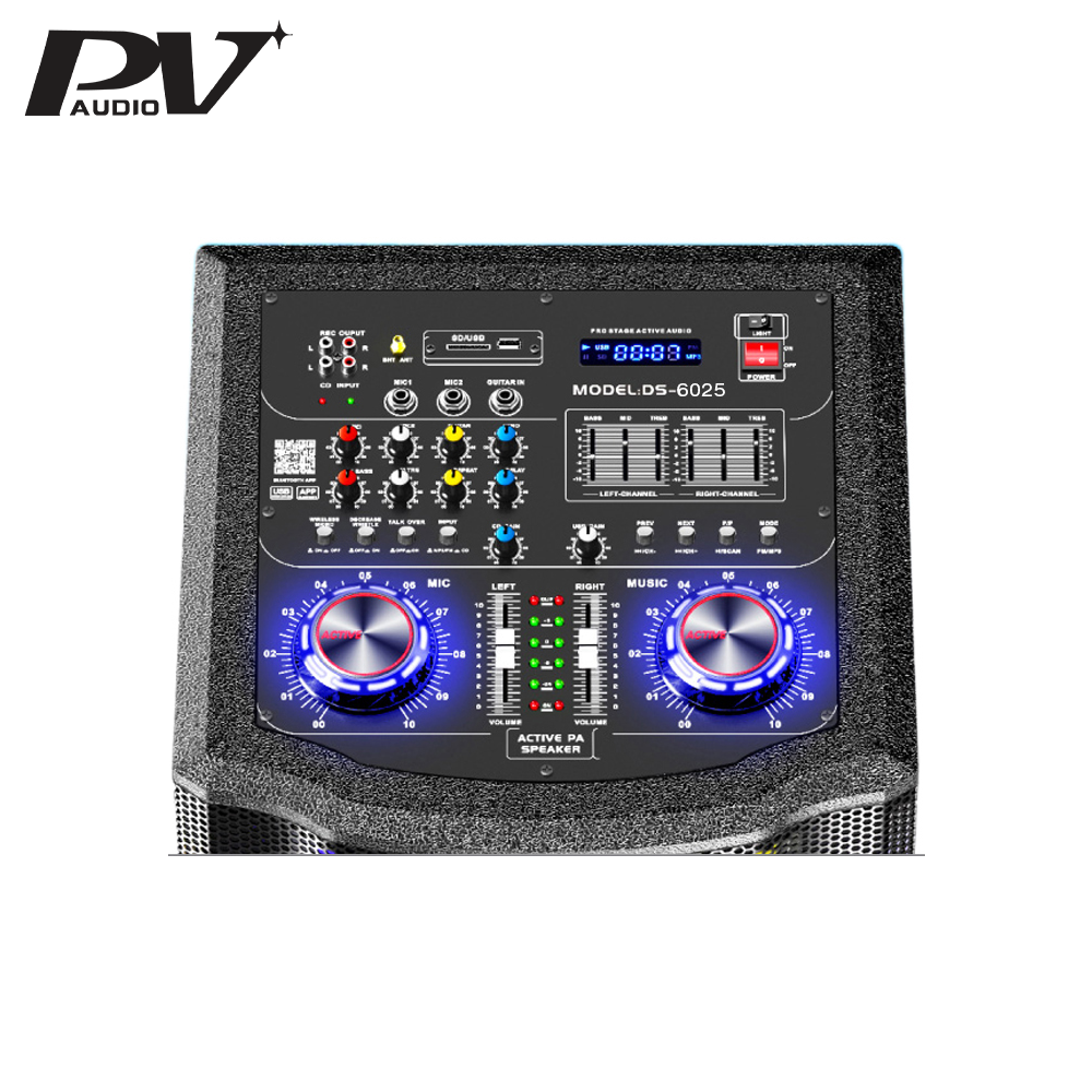 Start the party off right with the built-in disco light . Designed for DJ’s yet usable for amateurs alike PV AUDIO DS6025 DOUBLE 15″ ACTIVE PA SPEAKER SYSTEM